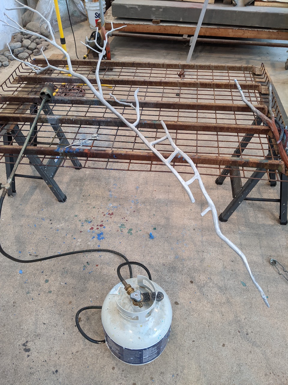 These past few months, I’ve had to get into a whole new category of tools in order to do the color on the bronze work. A hand cart and a blow torch have been essential. Color on bronze is an alchemic process called “patina” which combines natural elements, air, rain, chemicals plus heat. There are some ancient recipes that involve burying the bronzes in dirt or peeing on them- all natural – and then you let the air do the oxidizing. The pee recipe would work better for male sculptors, the French sculptor August Rodin instructed assistants at his studio to urinate over bronzes stored in the outside yard.